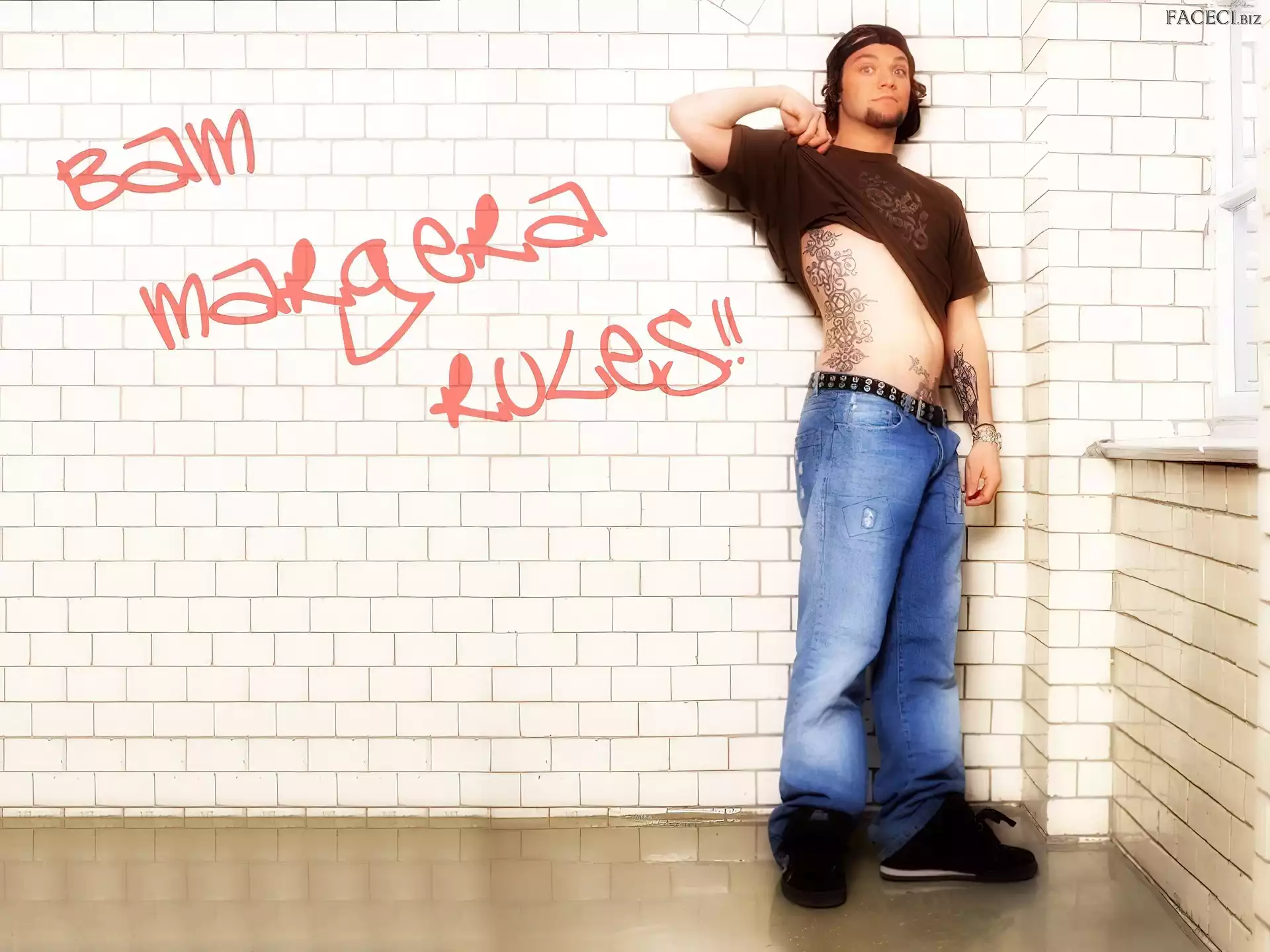 zegarek, Bam Margera, deskorolka okulary, Bam Margera, butelka kurtka, Bam Margera, rozpięta okulary, Bam Margera, twarze t-shirt, Bam Margera, brązowy włosy, Bam Margera, ciemne
